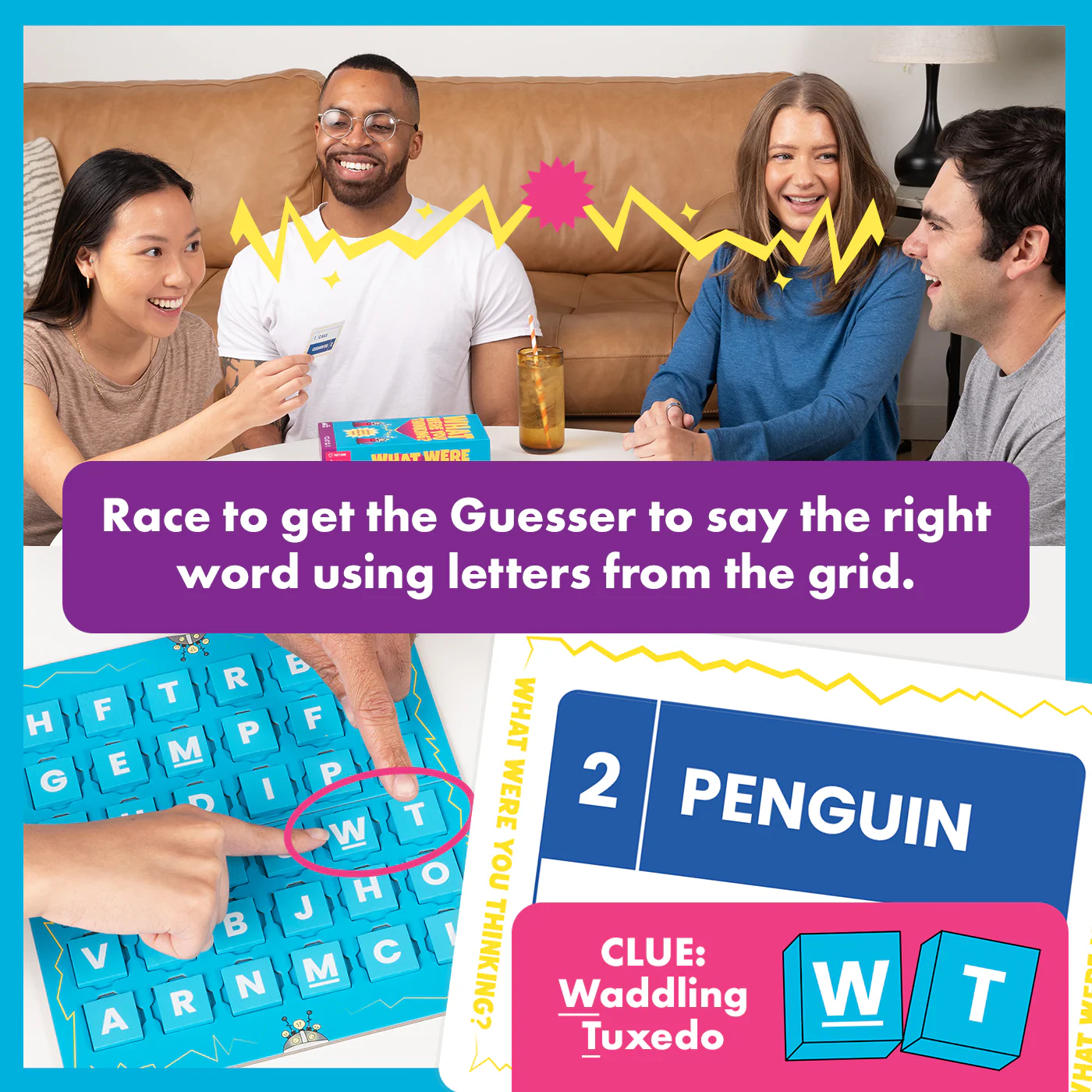 Can you give the perfect clue before anyone else? What Were You Thinking? is a guessing game for horrible mind readers, and it's as fun to watch as it is to play.